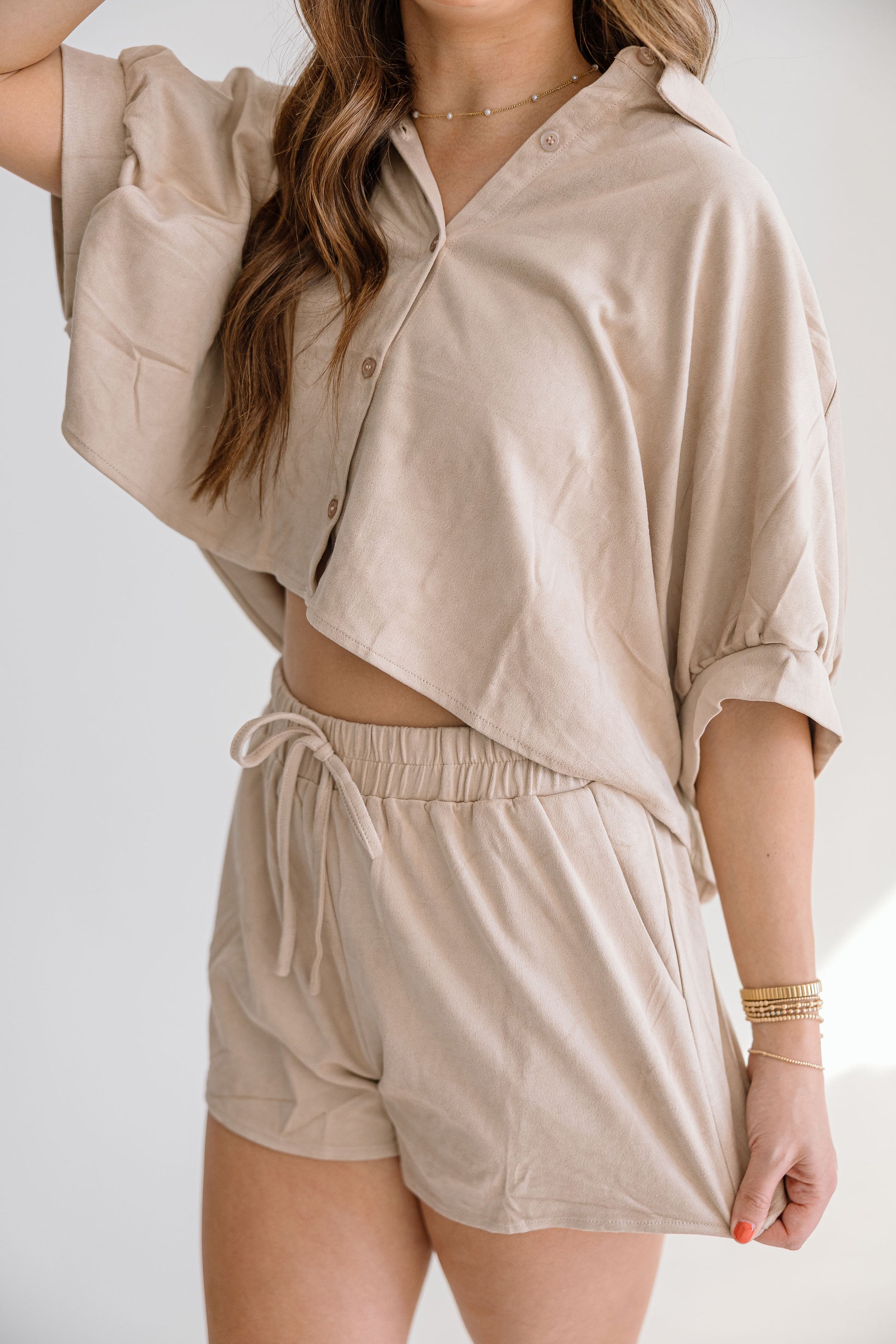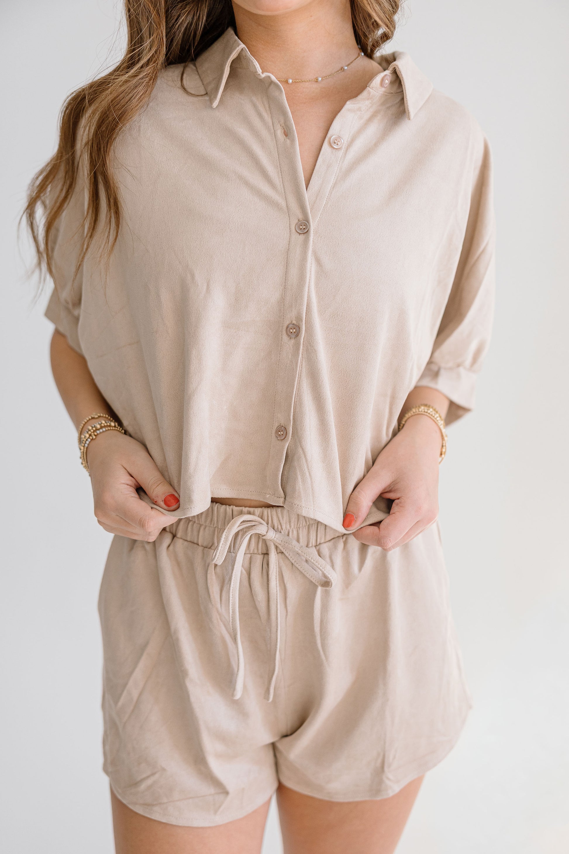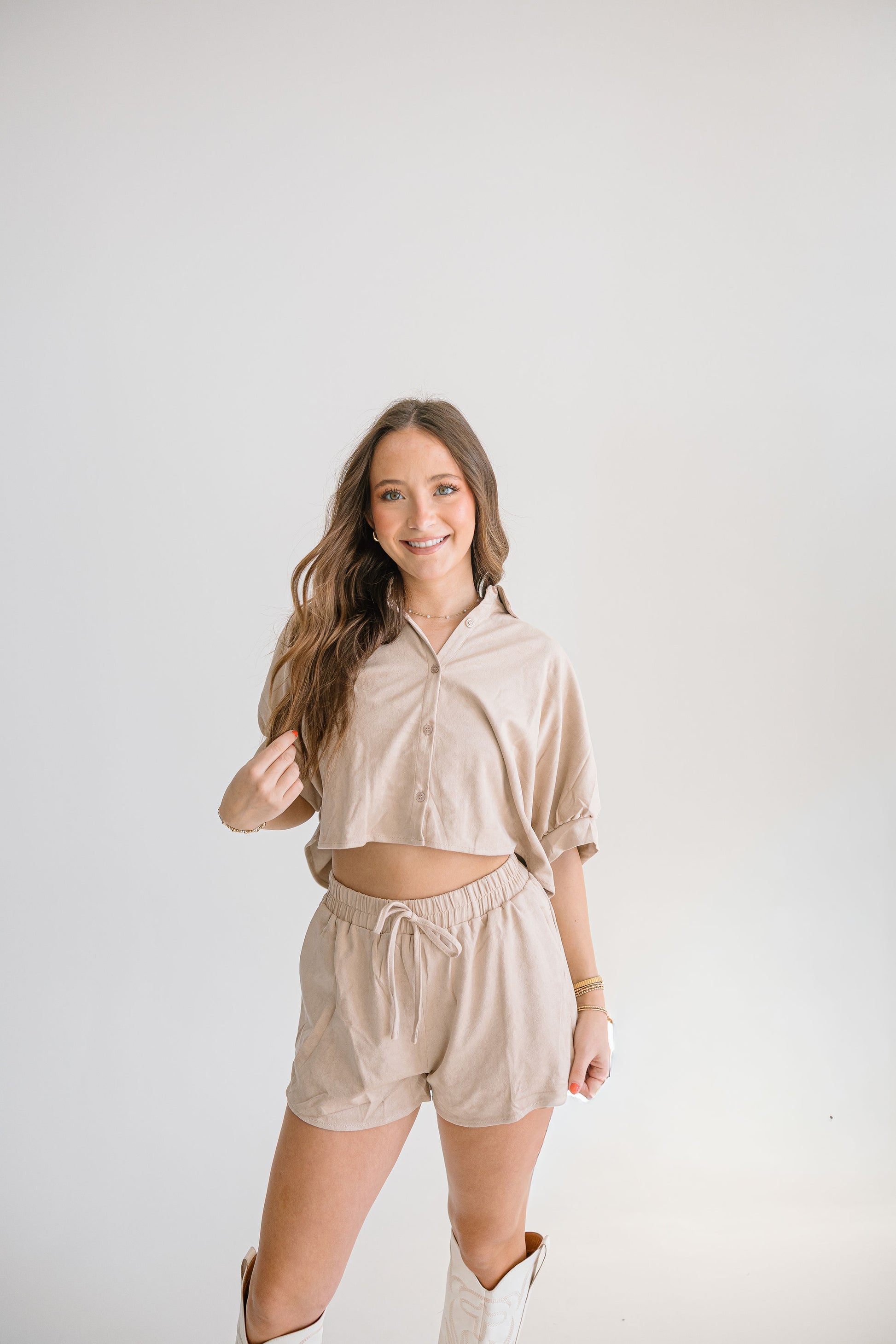 Step up your fashion game with The Palmer Set. This two piece, suede shorts set is perfect for all your special occasions - from concerts to family pictures to holidays. With its versatile style and comfortable fit, The Palmer has got you covered.