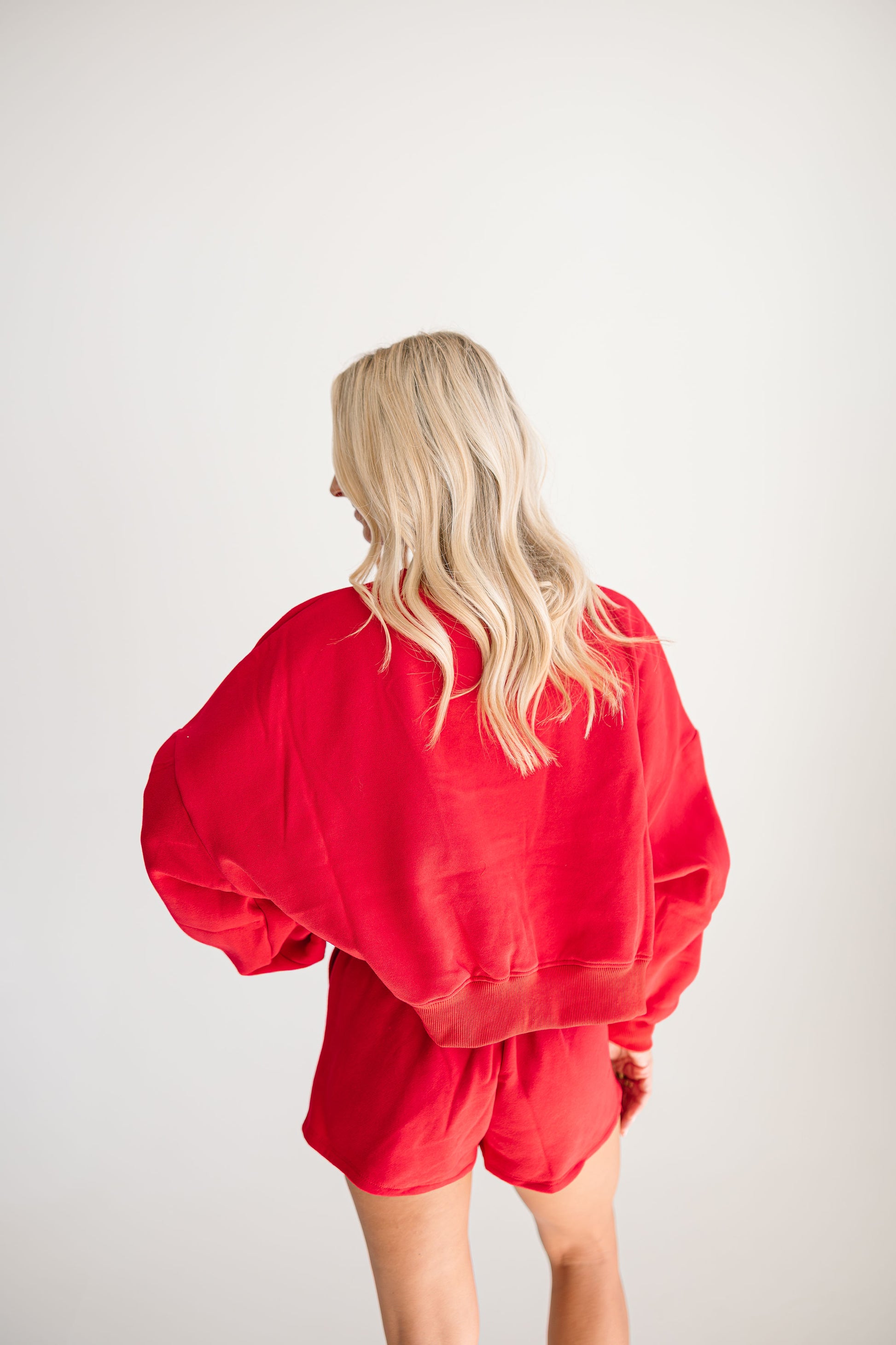 The Posie Set is a soft, comfortable sweatshirt and sweatshorts duo that works for any occasion. Wear it while relaxing at home, running errands, or getting ready for the holidays. The versatile design lets you style it your way, and the quality fabric keeps you cozy all day long. Once you try it, you'll understand why it's become such a go-to favorite.